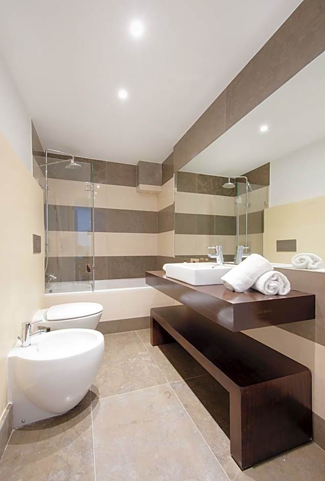 Featuring free toiletries and bathrobes, this double room includes a private bathroom with a bath or a shower, a hairdryer and slippers. Guests can make meals in the kitchenette that features a refrigerator, a dishwasher, kitchenware and an oven. The spacious air-conditioned double room features a flat-screen TV with cable channels, a washing machine, a tea and coffee maker, a dining area as well as city views.